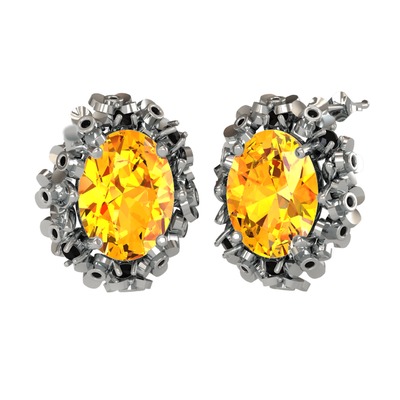 Sitrin ve siyah zirkon 8 ayar beyaz altın küpe