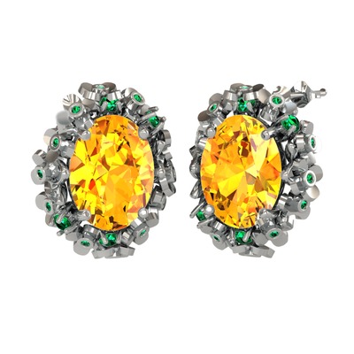 Sitrin ve yeşil kuvars 18 ayar beyaz altın küpe
