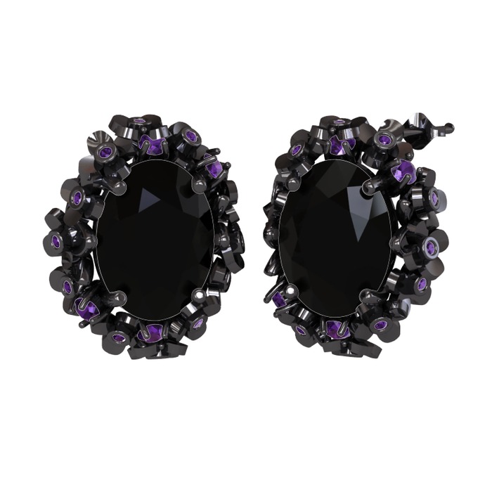 Siyah zirkon ve ametist 925 ayar siyah rodyum kaplama gümüş küpe