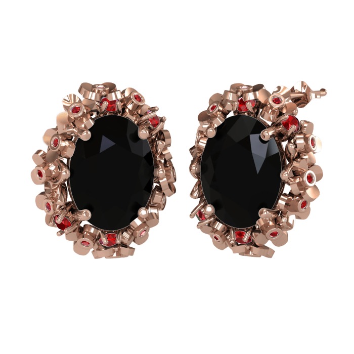 Siyah zirkon ve garnet 18 ayar rose altın küpe