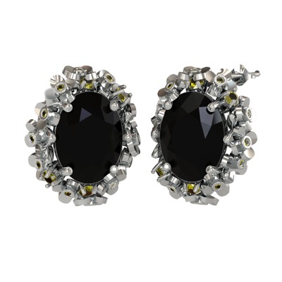 Siyah zirkon ve peridot 8 ayar beyaz altın küpe