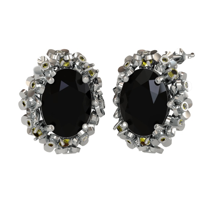 Siyah zirkon ve peridot 925 ayar gümüş küpe