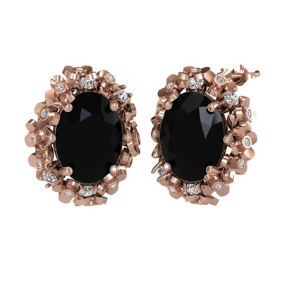 Siyah zirkon ve pırlanta 8 ayar rose altın küpe (0.36 karat)
