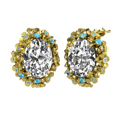 Swarovski ve akuamarin 14 ayar altın küpe