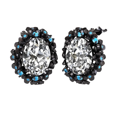 Swarovski ve akuamarin 925 ayar siyah rodyum kaplama gümüş küpe