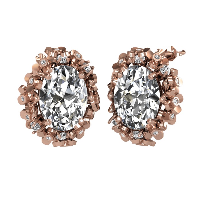 Swarovski ve pırlanta 18 ayar rose altın küpe (0.36 karat)