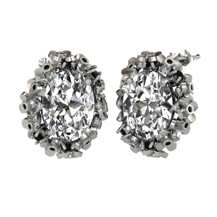 Swarovski ve siyah zirkon 14 ayar beyaz altın küpe