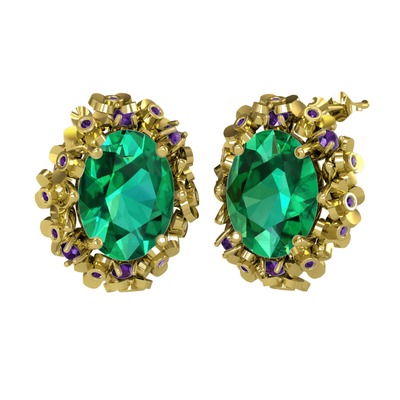 Yeşil kuvars ve ametist 14 ayar altın küpe