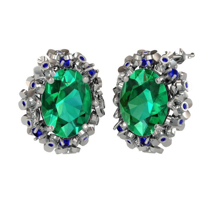 Yeşil kuvars ve lab safir 8 ayar beyaz altın küpe