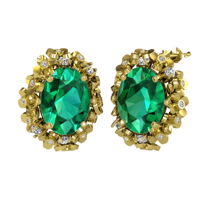 Yeşil kuvars ve pırlanta 8 ayar altın küpe (0.36 karat)