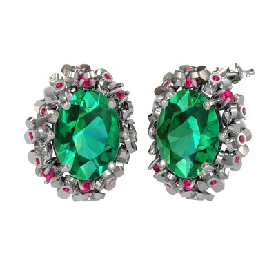 Yeşil kuvars ve rodolit garnet 18 ayar beyaz altın küpe