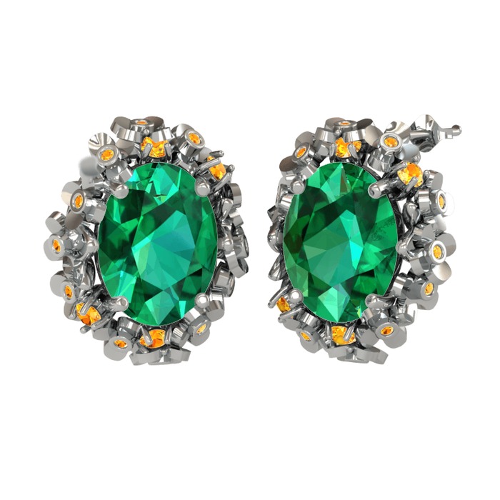 Yeşil kuvars ve sitrin 18 ayar beyaz altın küpe