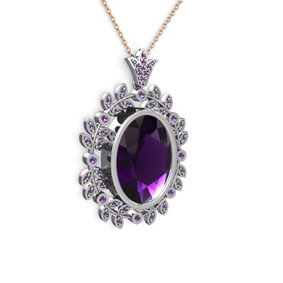 Ametist 18 ayar beyaz altın kolye (40 cm rose altın rolo zincir)