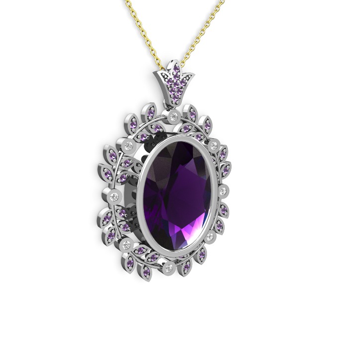 Ametist ve beyaz zirkon 18 ayar beyaz altın kolye (40 cm altın rolo zincir)