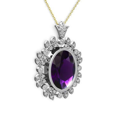 Ametist ve beyaz zirkon 18 ayar beyaz altın kolye (40 cm altın rolo zincir)