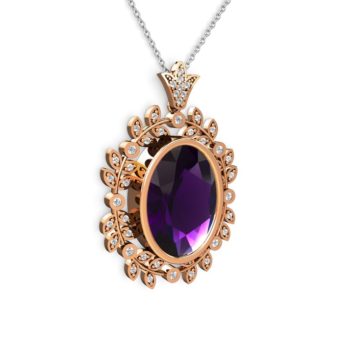Ametist ve beyaz zirkon 8 ayar rose altın kolye (40 cm beyaz altın rolo zincir)