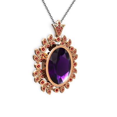 Ametist ve garnet 14 ayar rose altın kolye (40 cm gümüş rolo zincir)