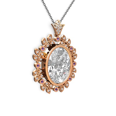 Beyaz zirkon ve ametist 14 ayar rose altın kolye (40 cm gümüş rolo zincir)