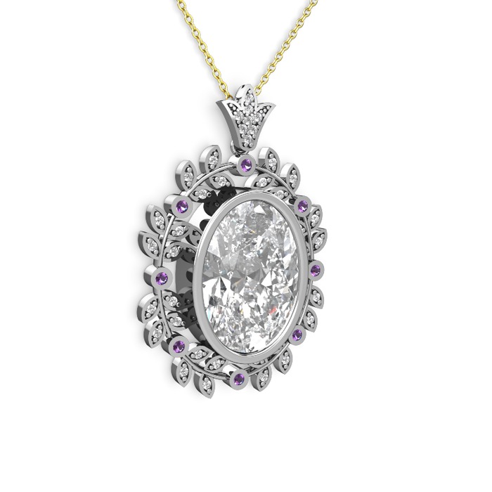 Beyaz zirkon ve ametist 18 ayar beyaz altın kolye (40 cm altın rolo zincir)
