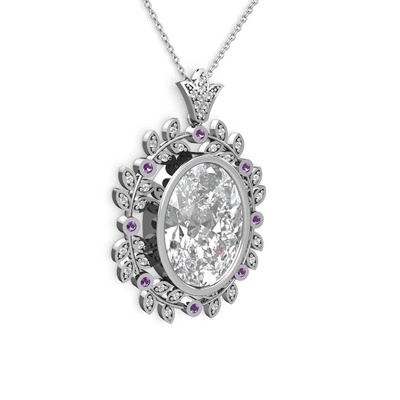 Belka Demet Taç Kolye - Beyaz zirkon ve ametist 18 ayar beyaz altın kolye (40 cm beyaz altın rolo zincir)