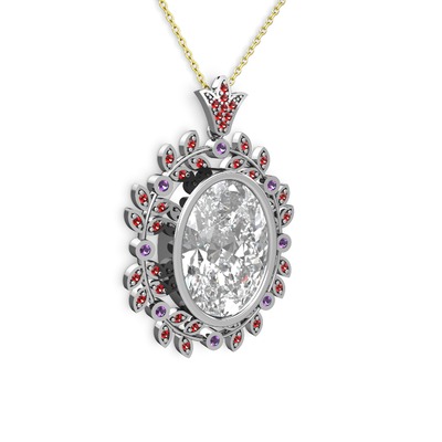 Beyaz zirkon, garnet ve ametist 8 ayar beyaz altın kolye (40 cm altın rolo zincir)