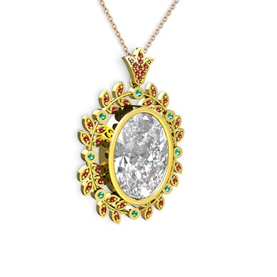 Beyaz zirkon, garnet ve yeşil kuvars 14 ayar altın kolye (40 cm rose altın rolo zincir)
