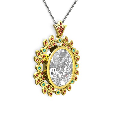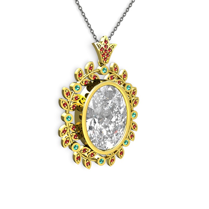 Beyaz zirkon, garnet ve yeşil kuvars 925 ayar altın kaplama gümüş kolye (40 cm gümüş rolo zincir)