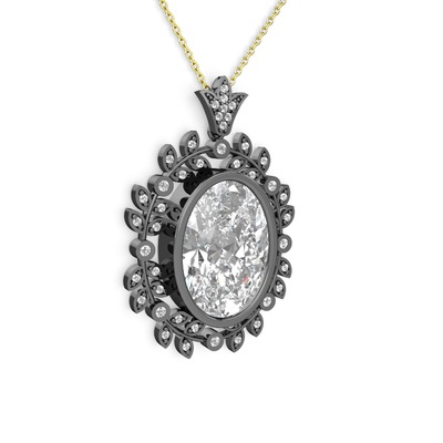 Beyaz zirkon 925 ayar siyah rodyum kaplama gümüş kolye (40 cm gümüş rolo zincir)
