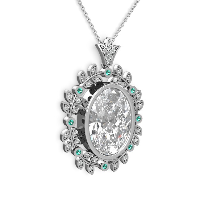 Beyaz zirkon ve yeşil kuvars 14 ayar beyaz altın kolye (40 cm beyaz altın rolo zincir)