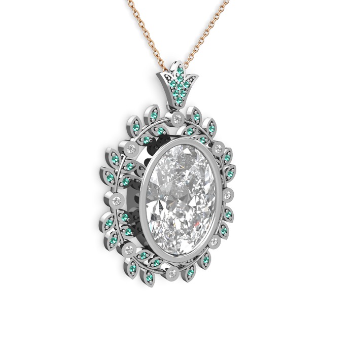 Beyaz zirkon ve yeşil kuvars 8 ayar beyaz altın kolye (40 cm gümüş rolo zincir)