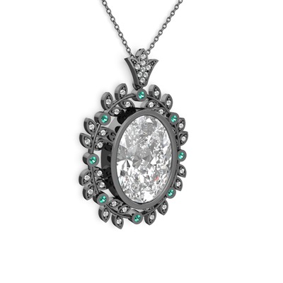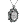 Beyaz zirkon ve yeşil kuvars 925 ayar siyah rodyum kaplama gümüş kolye (40 cm gümüş rolo zincir)