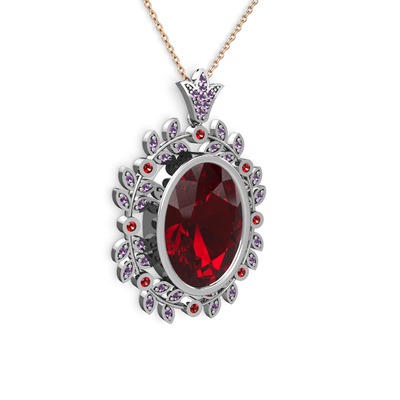 Garnet ve ametist 14 ayar beyaz altın kolye (40 cm gümüş rolo zincir)