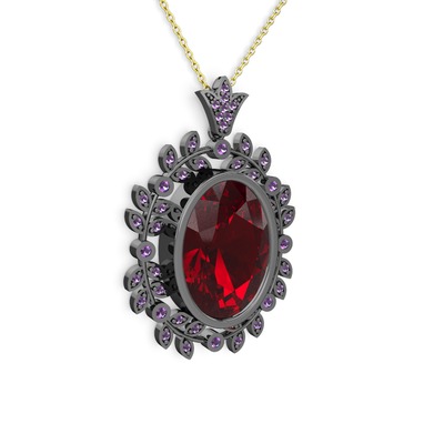 Garnet ve ametist 925 ayar siyah rodyum kaplama gümüş kolye (40 cm altın rolo zincir)