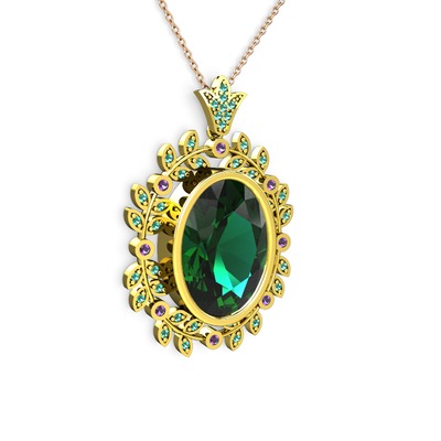 Yeşil kuvars ve ametist 18 ayar altın kolye (40 cm gümüş rolo zincir)
