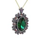 Yeşil kuvars, ametist ve garnet 925 ayar siyah rodyum kaplama gümüş kolye (40 cm gümüş rolo zincir)