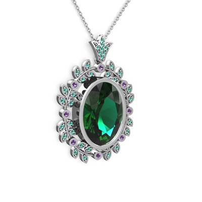 Yeşil kuvars ve ametist 925 ayar gümüş kolye (40 cm beyaz altın rolo zincir)