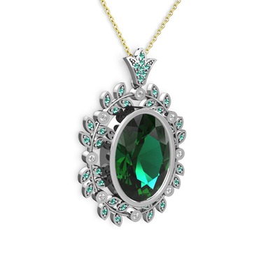 Yeşil kuvars ve beyaz zirkon 18 ayar beyaz altın kolye (40 cm altın rolo zincir)