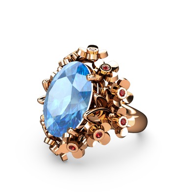 Akuamarin ve garnet 14 ayar rose altın yüzük