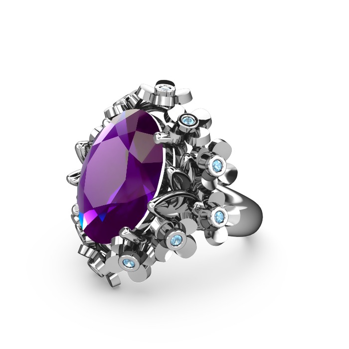 Ametist ve akuamarin 18 ayar beyaz altın yüzük