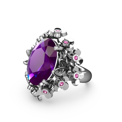 Ametist ve rodolit garnet 925 ayar gümüş yüzük
