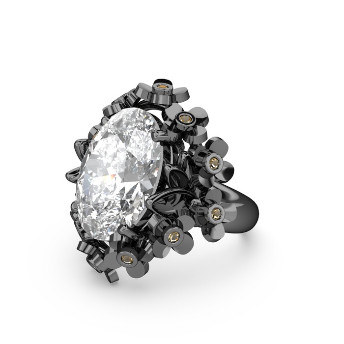 Beyaz zirkon ve dumanlı kuvars 925 ayar siyah rodyum kaplama gümüş yüzük