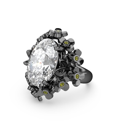 Beyaz zirkon ve peridot 925 ayar siyah rodyum kaplama gümüş yüzük
