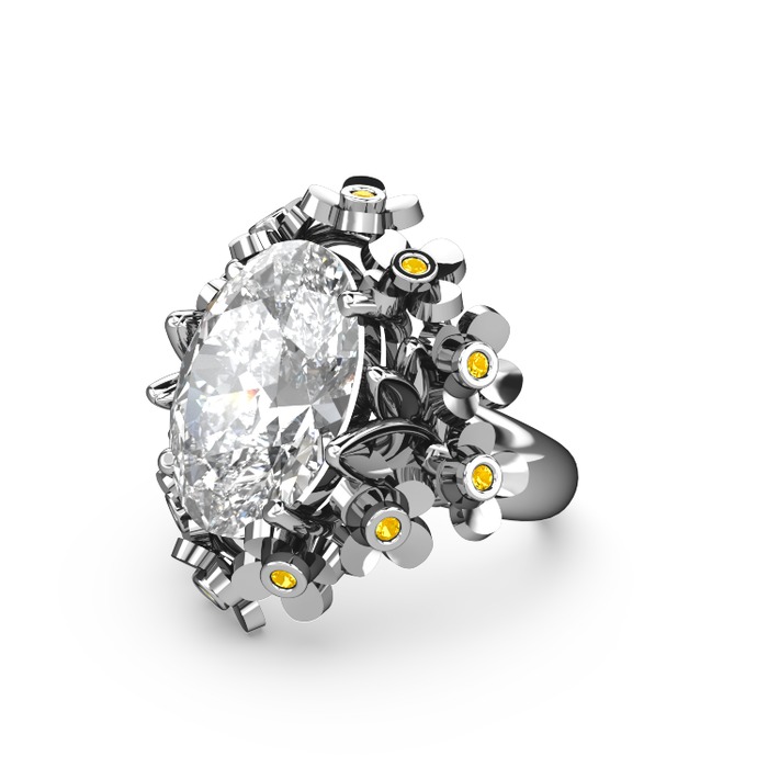 Beyaz zirkon ve sitrin 925 ayar gümüş yüzük