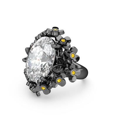 Beyaz zirkon ve sitrin 925 ayar siyah rodyum kaplama gümüş yüzük