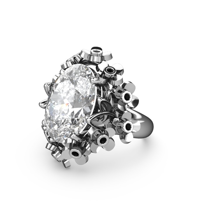 Beyaz zirkon ve siyah zirkon 14 ayar beyaz altın yüzük