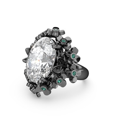Beyaz zirkon ve yeşil kuvars 925 ayar siyah rodyum kaplama gümüş yüzük