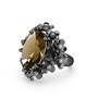 Dumanlı kuvars ve pırlanta 925 ayar siyah rodyum kaplama gümüş yüzük (0.18 karat)