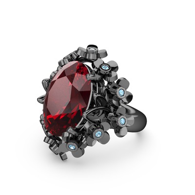 Garnet ve akuamarin 925 ayar siyah rodyum kaplama gümüş yüzük