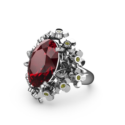 Garnet ve peridot 14 ayar beyaz altın yüzük