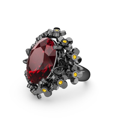 Garnet ve sitrin 925 ayar siyah rodyum kaplama gümüş yüzük